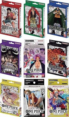 - Starter Deck (ST) — 51 carte + 10 carte DON!! precostruite. Ideale per iniziare a giocare subito. Alcune versioni contengono carte esclusive non trovabili nei booster.